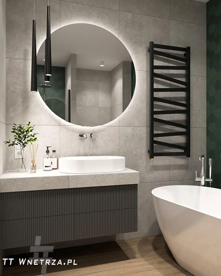 Skoro wymierzyliśmy łazienkę i znamy optymalne wymiary umywalki, czas podjąć kolejną decyzję: model nablatowy czy wpuszczony w blat? Architekt Anna Musiał zwraca uwagę, że – W dużych łazienkach, gdzie mamy sporo miejsca, warto wybrać umywalkę od 60 cm wzwyż. Jeśli chcemy, by była ona mocno wyeksponowana, postawmy na model stawiany na blacie.