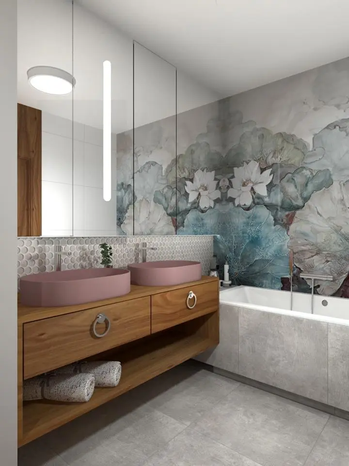 Tapeta w łazience projekt LOFTSTUDIO Irena Lang i Dominika Wąs