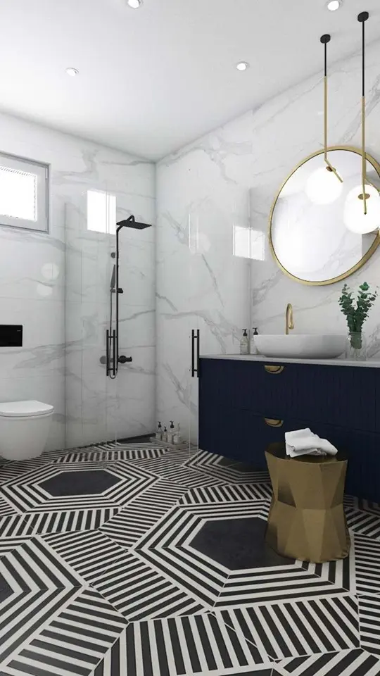 Marmur obecnie przeżywa swoja drugą młodość. Pomimo, że niektórym może kojarzyć się jedynie z luksusowymi apartamentami, współczesne projekty łazienek pokazują, że jest bardzo wdzięcznym materiałem, który w zależności od aranżacji może prezentować inne oblicza. Pięknie łączy się ze złotem, drewnem, praktycznie każdym kolorem, płytkami imitującymi beton itp.