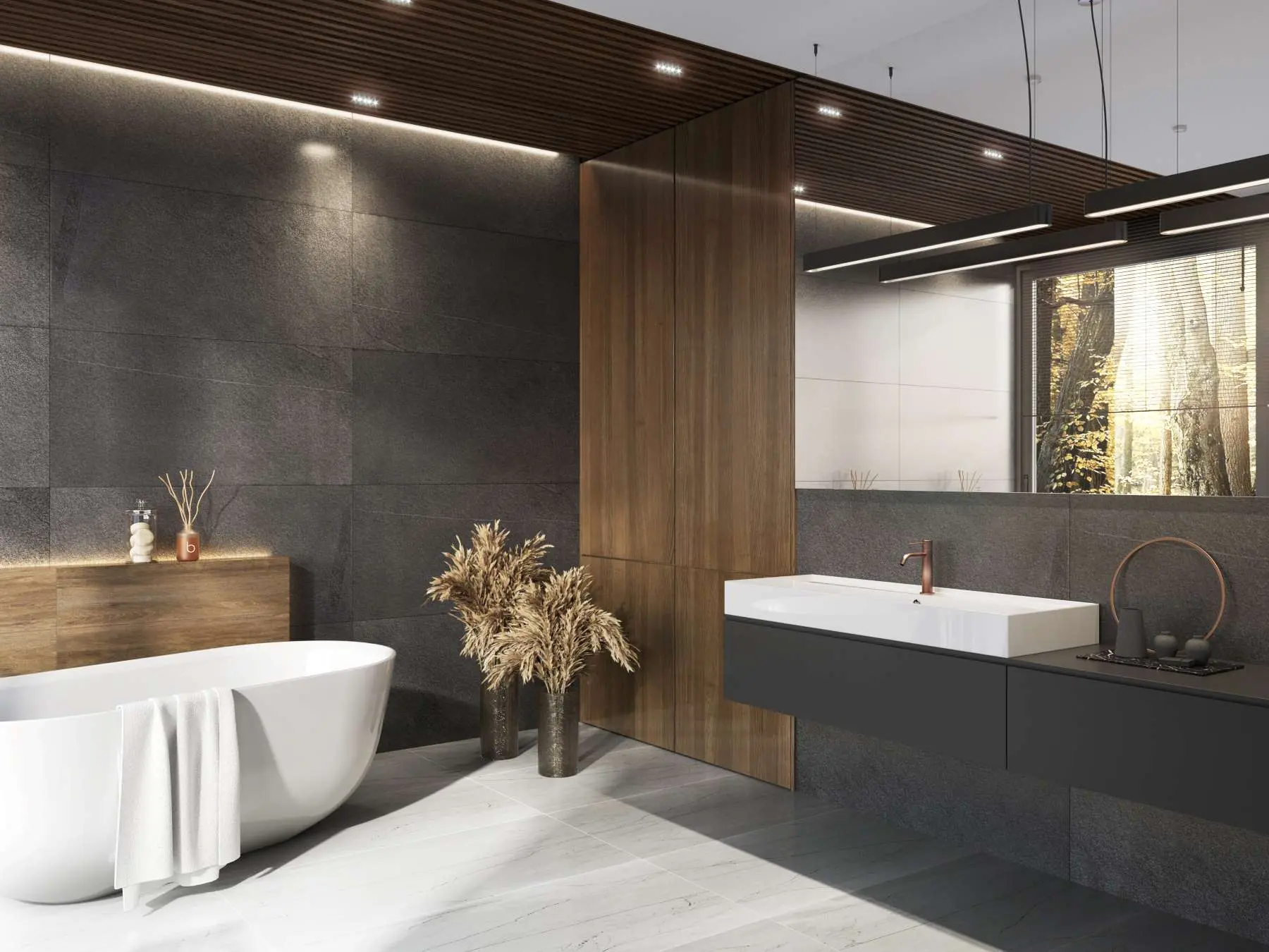 Ogromnym trendem w aranżacji łazienki są czarne i złote baterie. Te pierwsze doskonale sprawdzą się we wnętrzach urządzonych w stylu industrialnym, skandynawskim, minimalistycznym i nowoczesnym, natomiast złota armatura jest dobrym rozwiązaniem, gdy zależy nam na bardziej eleganckiej stylizacji. Świetnie odnajdzie się w aranżacjach w stylu scandi chic, klasycznych, vintage, glamour oraz art deco.