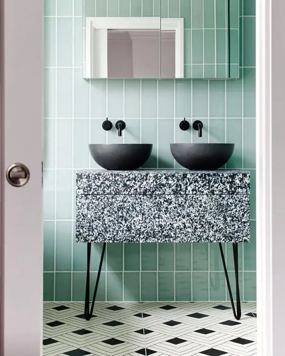 O wielkim powrocie lastryko pisaliśmy już jakiś czas temu i jak zwykle nie pomyliliśmy się. Ten nieco ekstrawagancki wzór pojawia się coraz częściej w projektach łazienek i w coraz odważniejszych aranżacjach. Najłatwiejszym sposobem na wprowadzenie tego motywu są płytki: możemy wybrać tradycyjne „salcesony” lub bardziej nowoczesne – ubrane w żywe kolory. Innym sposobem są meble łazienkowe z frontami lub blatami imitującymi ten sztuczny kamień, albo nawet ceramika.