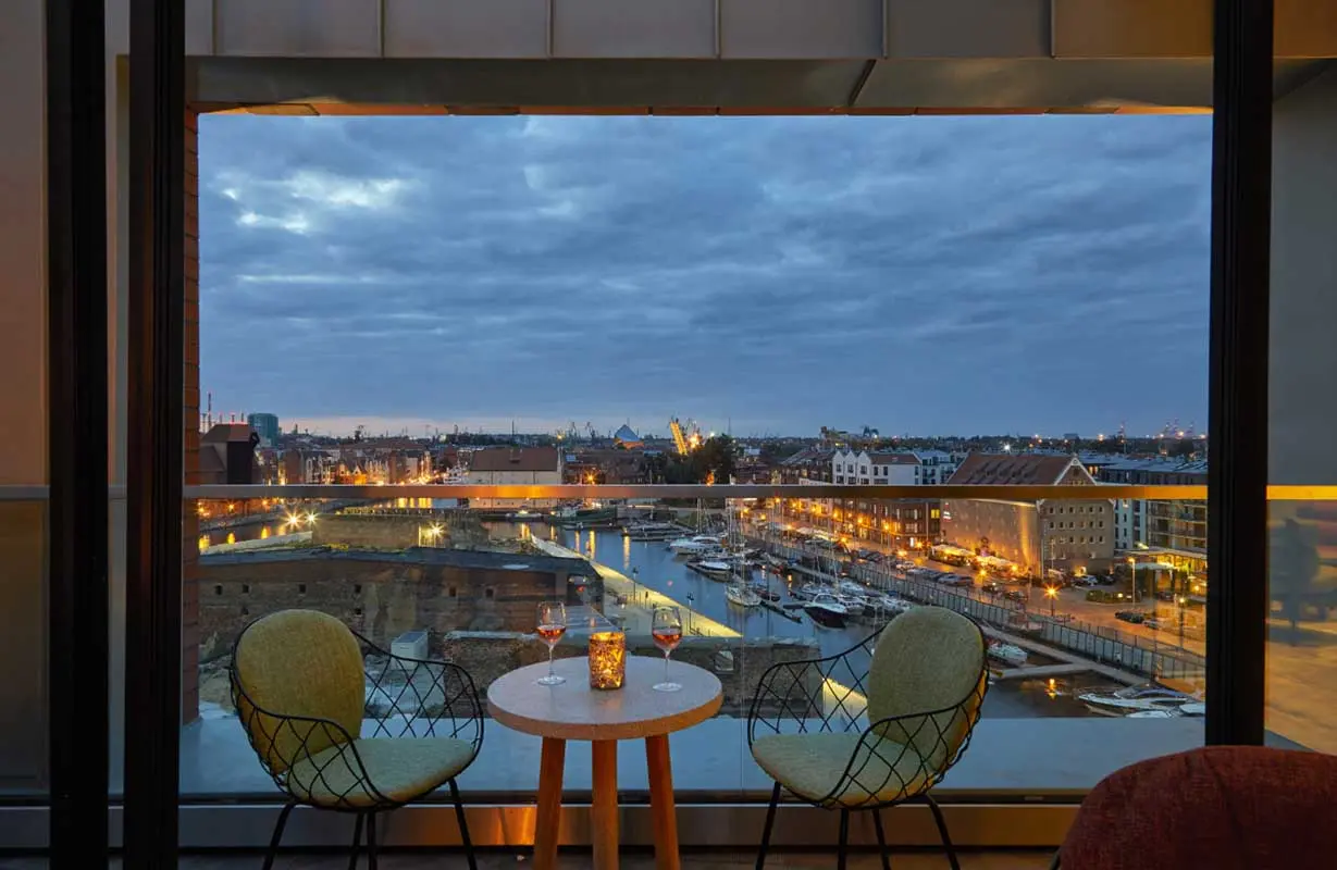 Nowoczesne i eleganckie wnętrze zostało zaprojektowane przez londyńskie studio architektoniczne DeSallesFlint. Przestrzeń jest funkcjonalna i stylowo umeblowana, wypełniona pięknymi i wysmakowanymi przedmiotami oraz dziełami sztuki. Całości nadano klimat portowego miasta. Architekci szukali inspiracji w dawnej Wyspie Spichrzów, dlatego w wystroju hotelu obecne są tkaniny z naturalnych włókien, takich jak bawełna, wełna czy len, a także ze skóry. Zastosowano też twarde wykończenia z drewna i ze stali. Dzieła sztuki autorstwa polskich artystów stanowią doskonałe uzupełnienie mebli. W hotelu oprócz wygodnie zaprojektowanych pokoi do dyspozycji gości pozostają też sale konferencyjne, spa, restauracja i dwa bary, w tym jeden umieszczony na dachu budynku.
