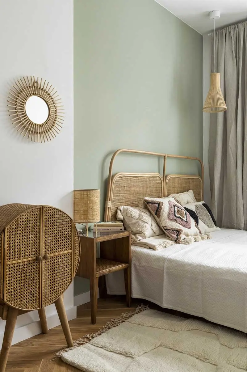 Warto wspomnieć również o aranżacji sypialni, która w tak wakacyjnym wydaniu zawsze prezentuje się nienagannie i – co ważne – daje poczucie komfortu i wygody. Oprócz okazałego łóżka z baldachimem i ażurowym zagłowiem, nieodzownym elementem sypialni w stylu balijskim jest pleciony parawan. Wraz ze swoją garderobianą funkcją, może stanowić barierę chroniącą przed upalnym, popołudniowym słońcem.
