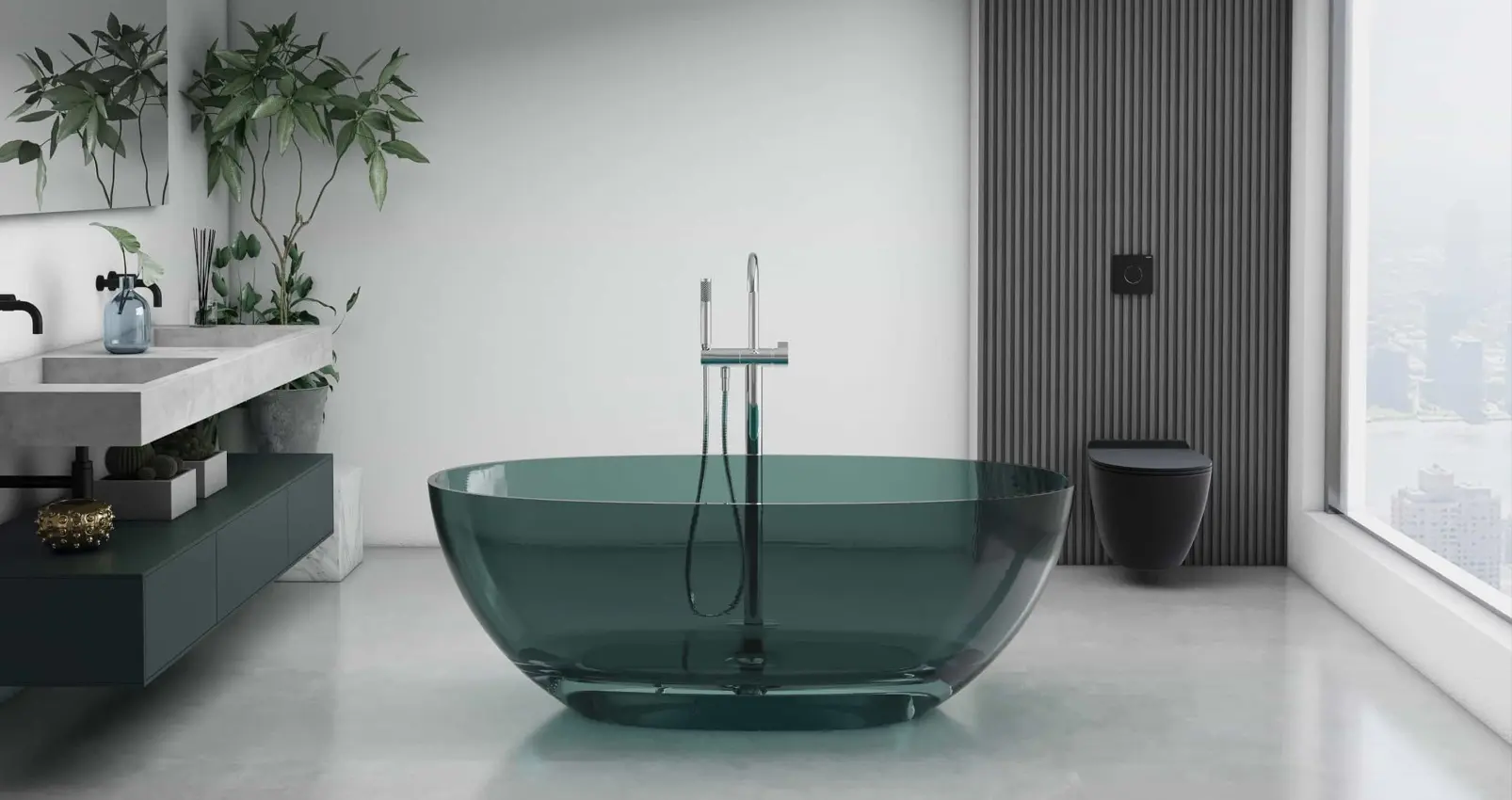 Transparentna wanna wolnostojąca z żywicy sygnowaną marką Internity Home to synonim ponadczasowej elegancji, najlepszego wzornictwa i trwałości. Ten wyjątkowy produkt sprawi, że Twoja łazienka przekształci się w luksusowy salon kąpielowy.
