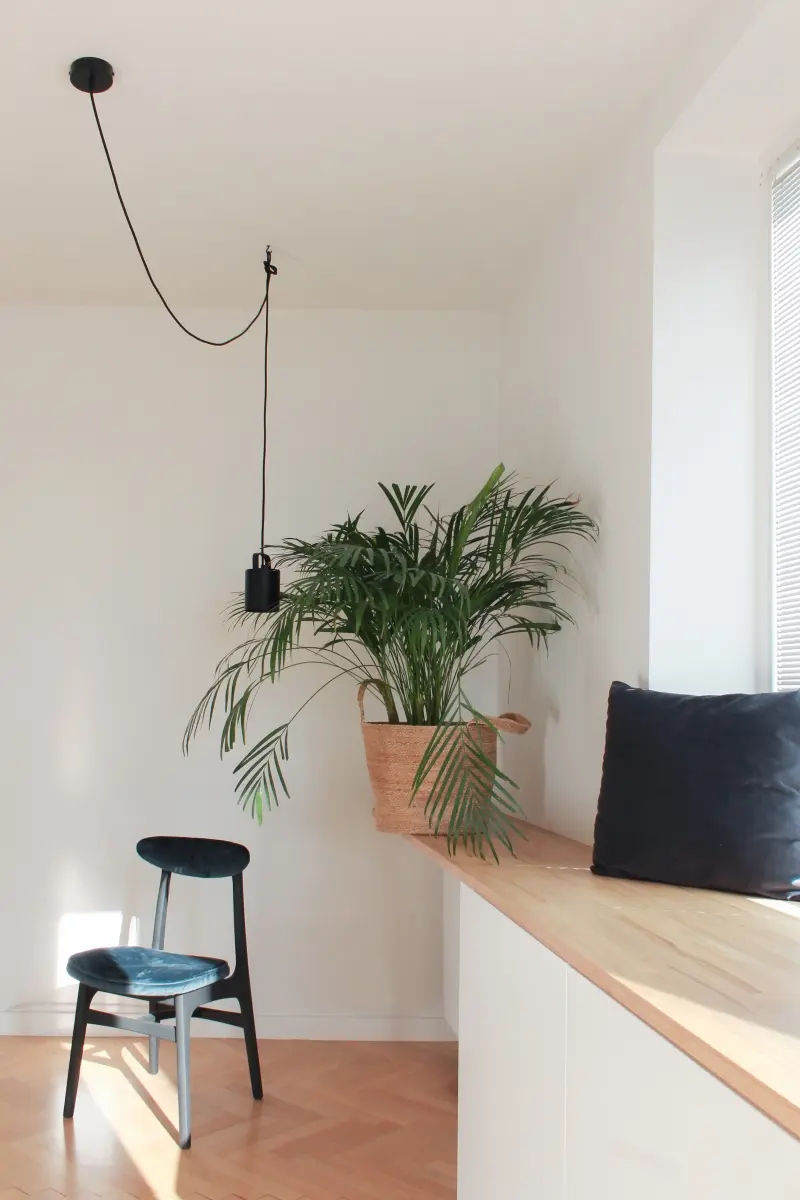3. Dzięki odpowiedzialnemu wyborze surowców, mieszkanie to zostało wykonane z wielu biodegradowalnych materiałów takich jak drewniane meble, lniane czy bawełniane tkaniny.