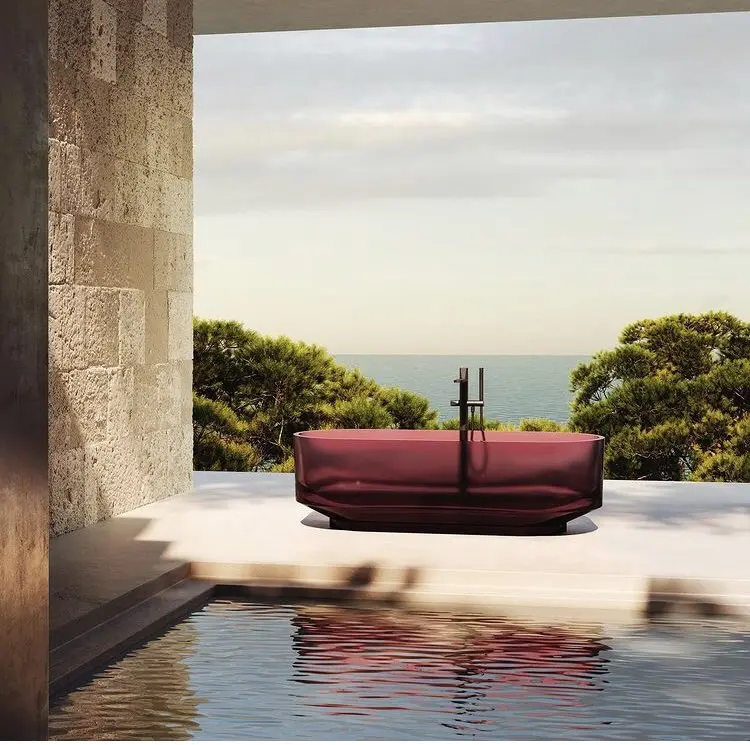 Szukasz wanny z efektem „wow”? Koniecznie musisz zwrócić uwagę na transparentne wannny Internity Home wykonane z przezroczystej, kolorowej żywicy z błyszczącym wykończeniem. Wanny występują w różnych wariantach kolorystycznych, m.in. niebieskim, zielonym czy brązowym. Pięknie wyglądają w blasku światła – naturalnego lub sztucznego. Promienie przechodząc przez wannę, roztaczają wokół niej kolorową poświatę. To z pewnością oryginalna i efektowna propozycja dla nowoczesnych łazienek.