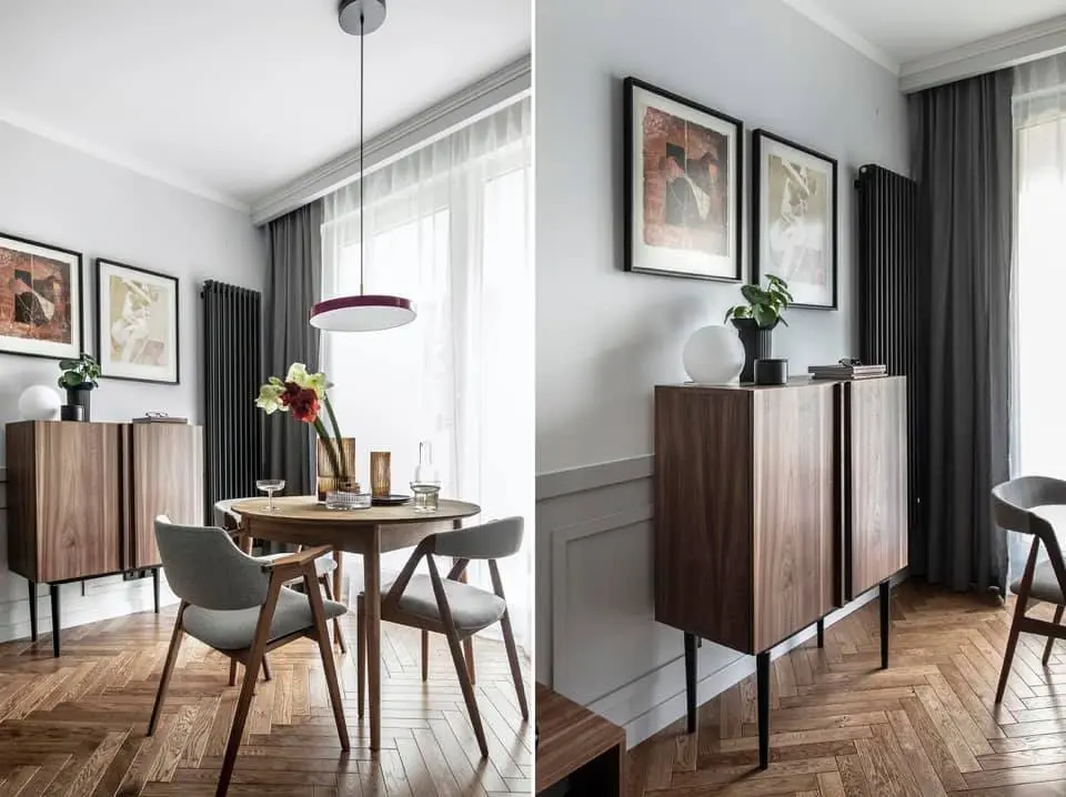 Szarość to ponadczasowa barwa, aby wystrój był bardziej przytulny, kolor szary często zestawia się z drewnem.