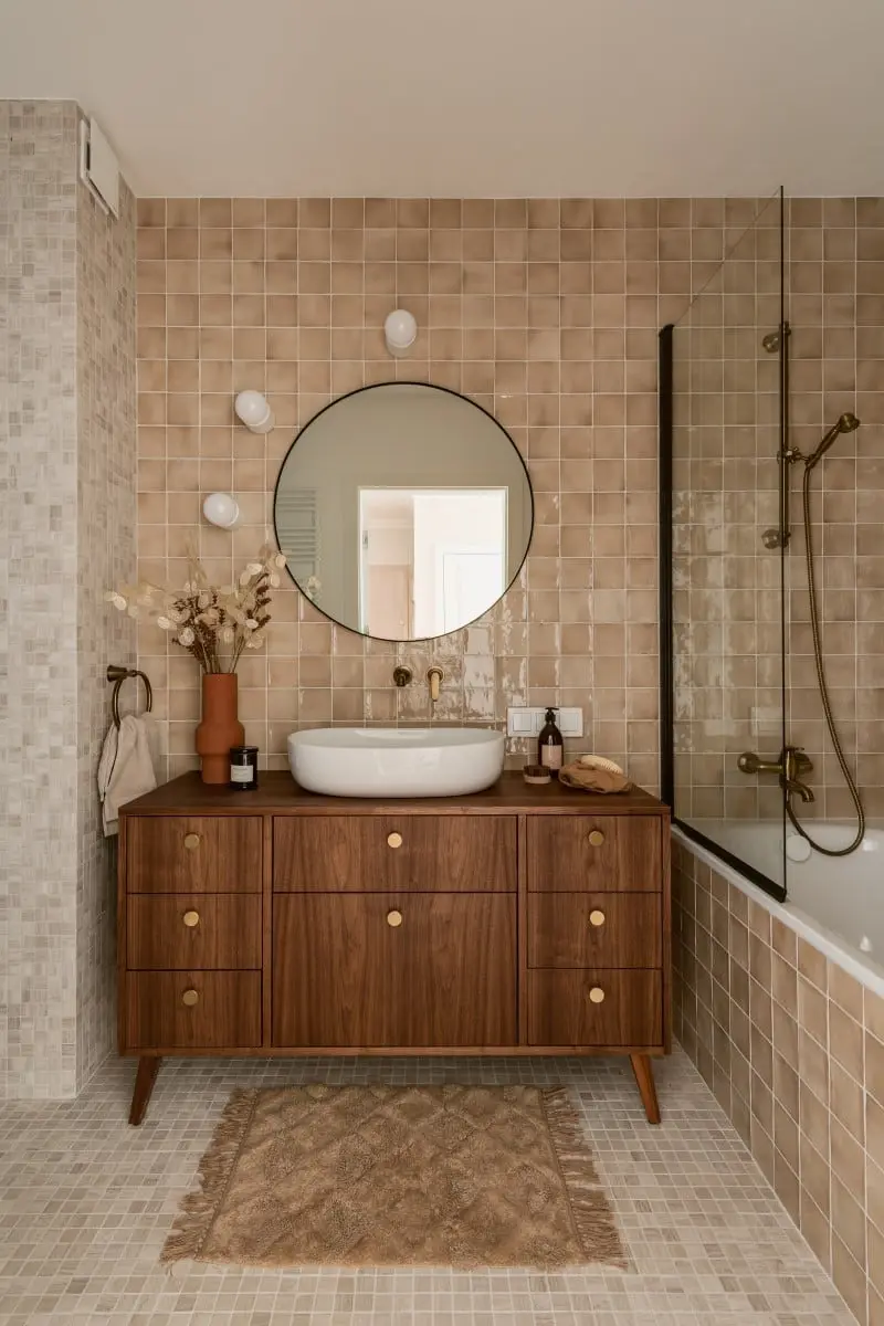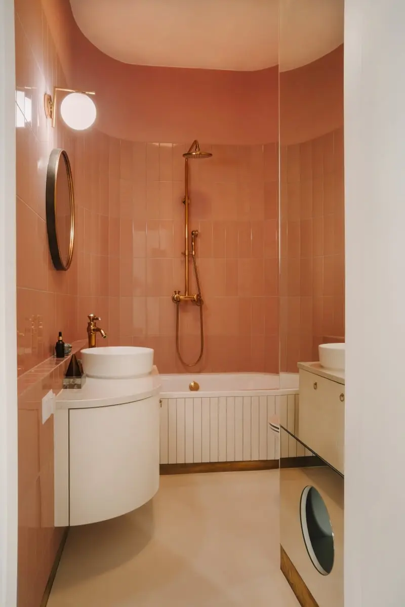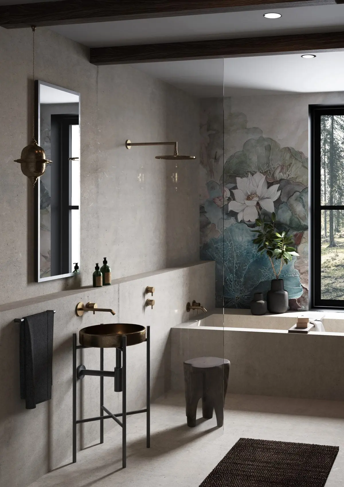 Obok swoje miejsce znajduje wanna wolnostojąca lub – jeśli nie mamy miejsca – przyścienna. Biżuterią wnętrza są nie tylko płytki, które możemy wykorzystać w aranżacji ścian i podłóg, ale również tapety oraz armatura a także inne elementy wyposażenia mogące pełnić rolę dekoracji, jak np. designerski grzejnik, lustro czy oświetlenie.