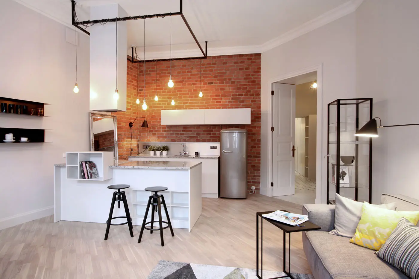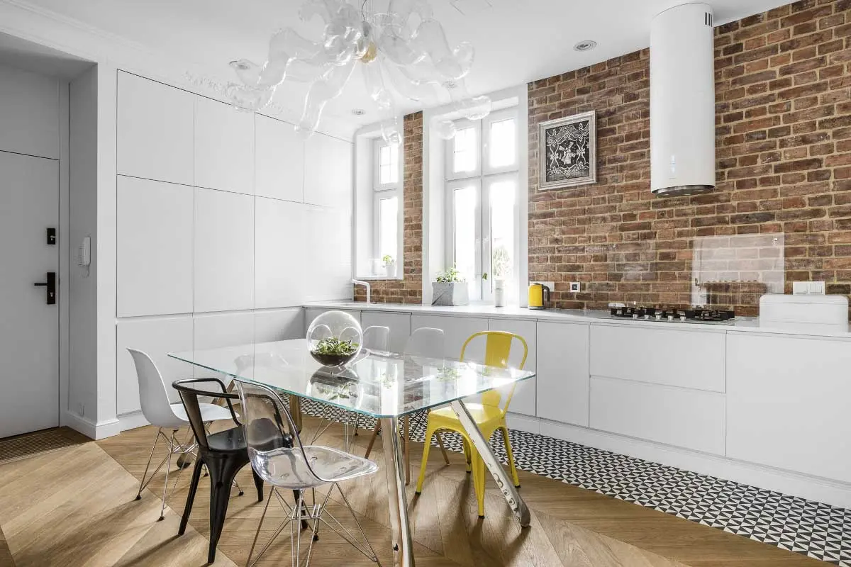 Trendem, który wciąż wznosi się na fali popularności jest styl industrialny. Chociaż nie jest jeszcze tak powszechny w pozostałych częściach domu, coraz więcej z nas decyduje się na kuchnię nawiązującą do tradycji starych fabryk. Loftowa przestrzeń nie będzie w pełni kompletna bez charakterystycznych industrialnych lamp w metalowych oprawach. Zawieszone jedna obok drugiej nad wyspą kuchenną spotęgują wrażenie przebywania w przestrzeni poprzemysłowej. Dopełnieniem całości będą meble, takie jak stół czy krzesła, których konstrukcja będzie opierała się głównie na metalowych elementach, najlepiej prezentujących swoje wdzięki w towarzystwie postarzanego, surowego drewna.