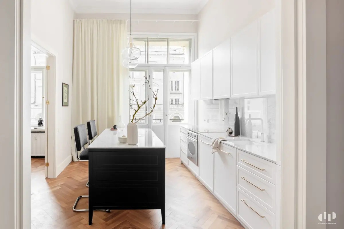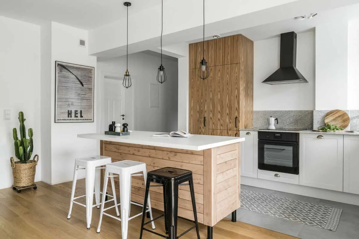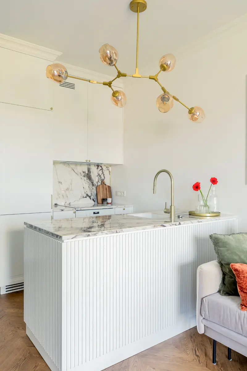 W każdym wnętrzu warto zwrócić uwagę na detale. W kuchni w stylu skandynawskim na pewno możemy postawić akcent na ciekawe uchwyty. Godną uwagi propozycją są skórzane. Jeśli jednak bliżej Wam do ekskluzywnej odsłony stylu skandynawskiego, interesującą propozycją okażą się złote. Ich dopełnieniem będzie złota armatura, a niekiedy nawet oprawy oświetleniowe w tym kolorze.