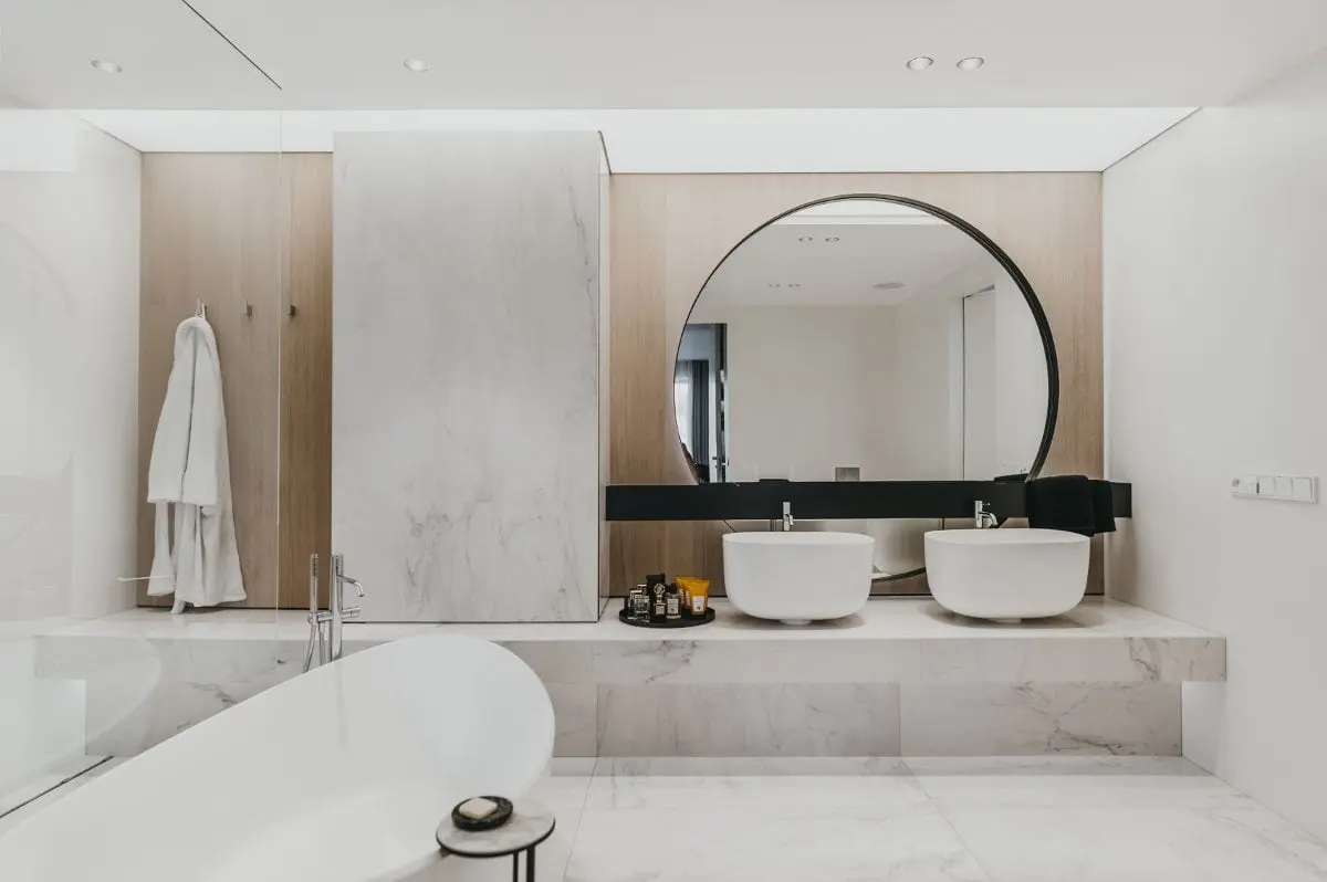 W Feng Shui biel reprezentuje czystość, przejrzystość oraz nowy początek. Kolor ten jest idealny do każdej przestrzeni, w której ma panować ład i spokój. Jednocześnie biel, stanowi idealne tło i sprawi, że nawet niewielkie lub ciemne pomieszczenie, stanie się wizualnie przestronniejsze. Kolejnym kolorem, który zgodnie z praktyką feng shui powinien pojawić się w łazience jest błękit – chłodne odcienie niebieskiego i granatu sprzyjają wyciszeniu i ułatwiają zrelaksowanie się.