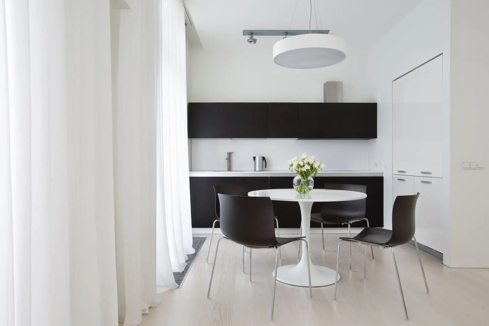 Możecie również postawić na klasykę, czyli połączyć czerń z bielą. Biel tę użyć warto zarówno w postaci blatu jak i płytek położonych na podłodze i ścianie pomieszczenia. Dzięki temu zachowacie w pomieszczeniu idealny balans między ciemnymi i jasnymi pigmentami, i nawet w stosunkowo niewielkim wnętrzu można będzie użyć czerni bez obawy przed tym, że przytłoczy ona aranżację.