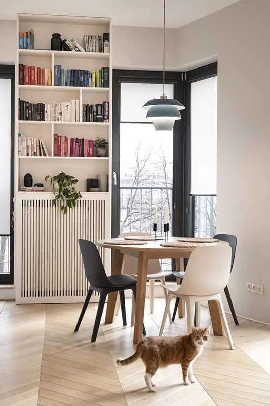 Wartym rozpatrzenia rozwiązaniem jest regał z książkami w roli ścianki działowej. Ten pomysł warto zastosować szczególnie w małych mieszkaniach, którym dobrze robi otwarty układ. Ścianka stworzona z regału nie tylko rozwiąże problem z przechowywaniem w estetyczny sposób książek, ale też symbolicznie rozdzieli różne strefy funkcyjne.