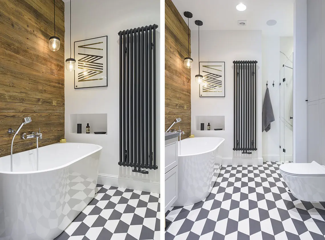 W stylu industrialnym unikamy zbędnych dekoracji. Tutaj stawiamy na zróżnicowane faktury, które same w sobie stają się dekorem wnętrza lub przedmioty codziennego użytku, które oprócz praktycznego zastosowania, ozdabiają aranżację. Takim elementem może być chociażby szafka pod umywalkę, lampa, designerska bateria, ale też na przykład grzejnik. W stylu industrialnym najlepiej sprawdzi się ten w grafitowym lub czarnym wybarwieniu. Najbardziej pożądanym modelem będzie ten drabinkowy.