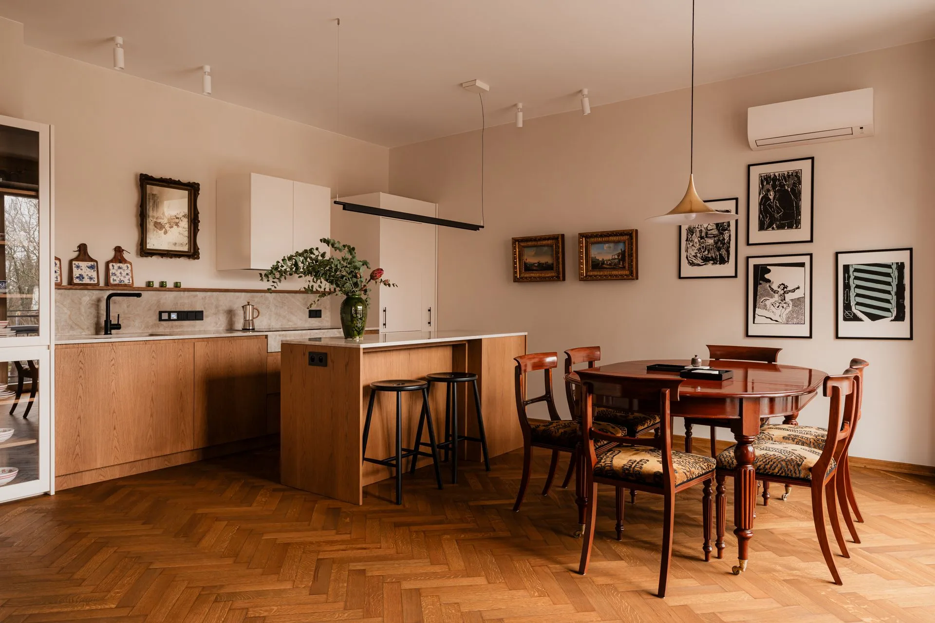 Przy takim układzie warto zadbać o to, aby wystrój kuchni harmonijnie komponował się z przestrzenią, na którą jest otwarta. W takim przypadku najlepiej sprawdza się zasada „less is more”.