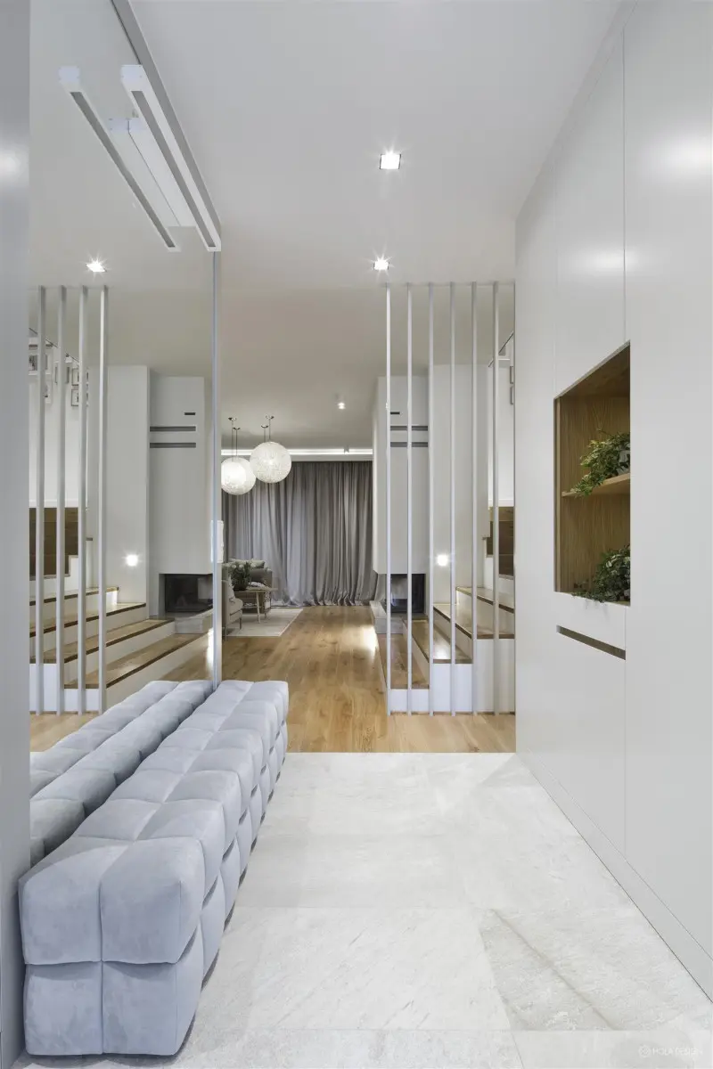 Bardzo ciekawym pomysłem jest stworzenie szafy, która z pozoru wygląda jak ściana. Tak samo można zaaranżować drzwi. W efekcie otrzymamy bardzo harmonijne wnętrze. Decydując się na dużą ilość luster, powiększymy optycznie przestrzeń i nawet wąski korytarz będzie wyglądał na przestronny.