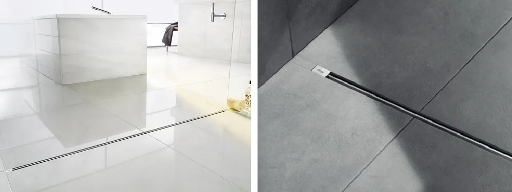 Oczywiście jeśli nie uznajemy półśrodków i podłoga w łazience na całej swojej płaszczyźnie musi być taka sama, to w takiej sytuacji jedynym wyjściem jest zbudowanie brodzika z płytek, a dokładniej mówiąc, zastosowanie odpowiednich odpływów liniowych w strefie prysznicowej. Przykładem takiego zastosowania mogą być rozwiązania proponowane przez firmę Viega i jej odpływ liniowy Advantix Vario.