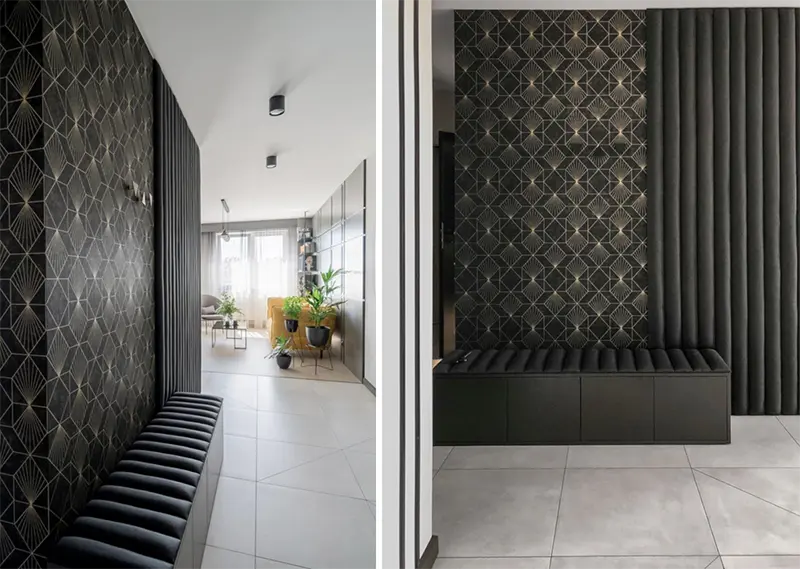 Płytka heksagonalna od kilku sezonów jest bardzo popularna. To idealne rozwiązanie dla osób kreatywnych, które lubią geometryczne wzory i zabawę formą. Kształt płytek umożliwia różnorodną kombinację kształtów pokrycia. Świetnie komponują się z podłogą drewnianą, więc jeśli chcemy uchronić drogocenne drewno przed zabrudzeniami, warto zainwestować w płytki heksagonalne, które również urozmaicą wasz przedpokój. Lubicie styl skandynawski? Chcecie, aby wasz przedpokój był skąpany w bielach i szarościach?