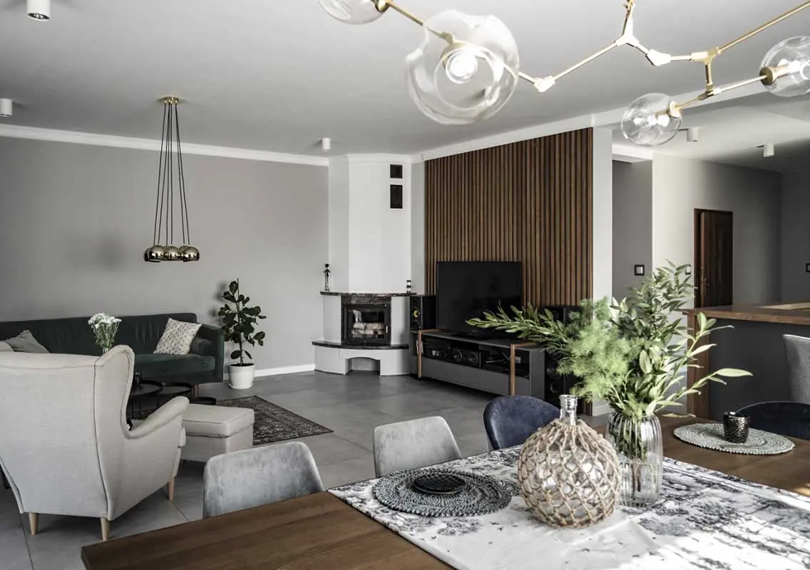 Płytki w salonie doskonale wpływają na akustykę pomieszczenia – sprawiają, że jest w nim relatywnie cicho.