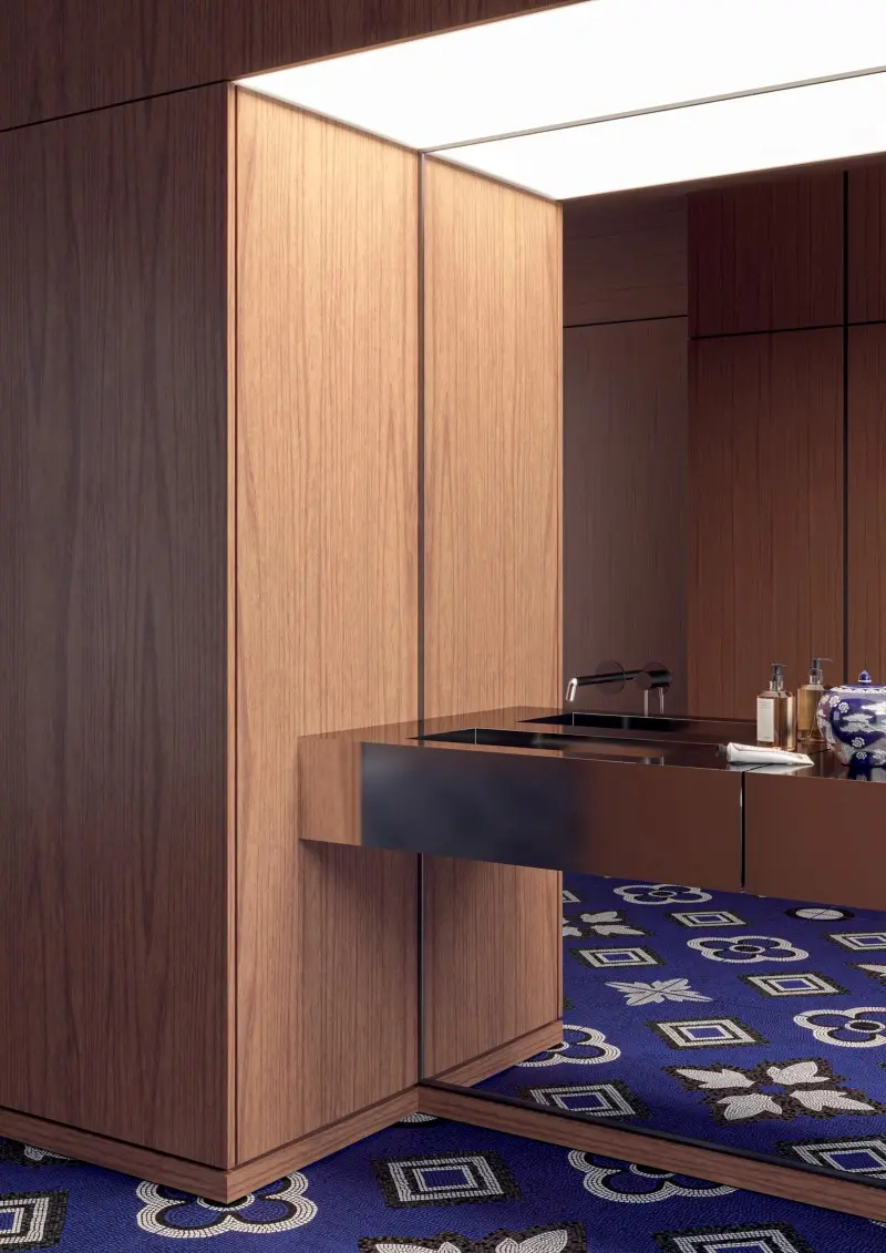 Istotnym elementem projektu łazienki są obłe formy, które rozmiękczają wnętrze oraz sprawiają, że staje się jeszcze bardziej delikatne w odbiorze. Dlatego w tak urządzonych pomieszczeniach dominują faliste linie oraz amorficzne kształty, które najczęściej wprowadzamy za pomocą luster, ale nie tylko. Warto zwrócić uwagę na kształt ceramiki łazienkowej. Organiczne linie umywalek, wanien czy misek wc idealnie podkreślą charakter miejsca.