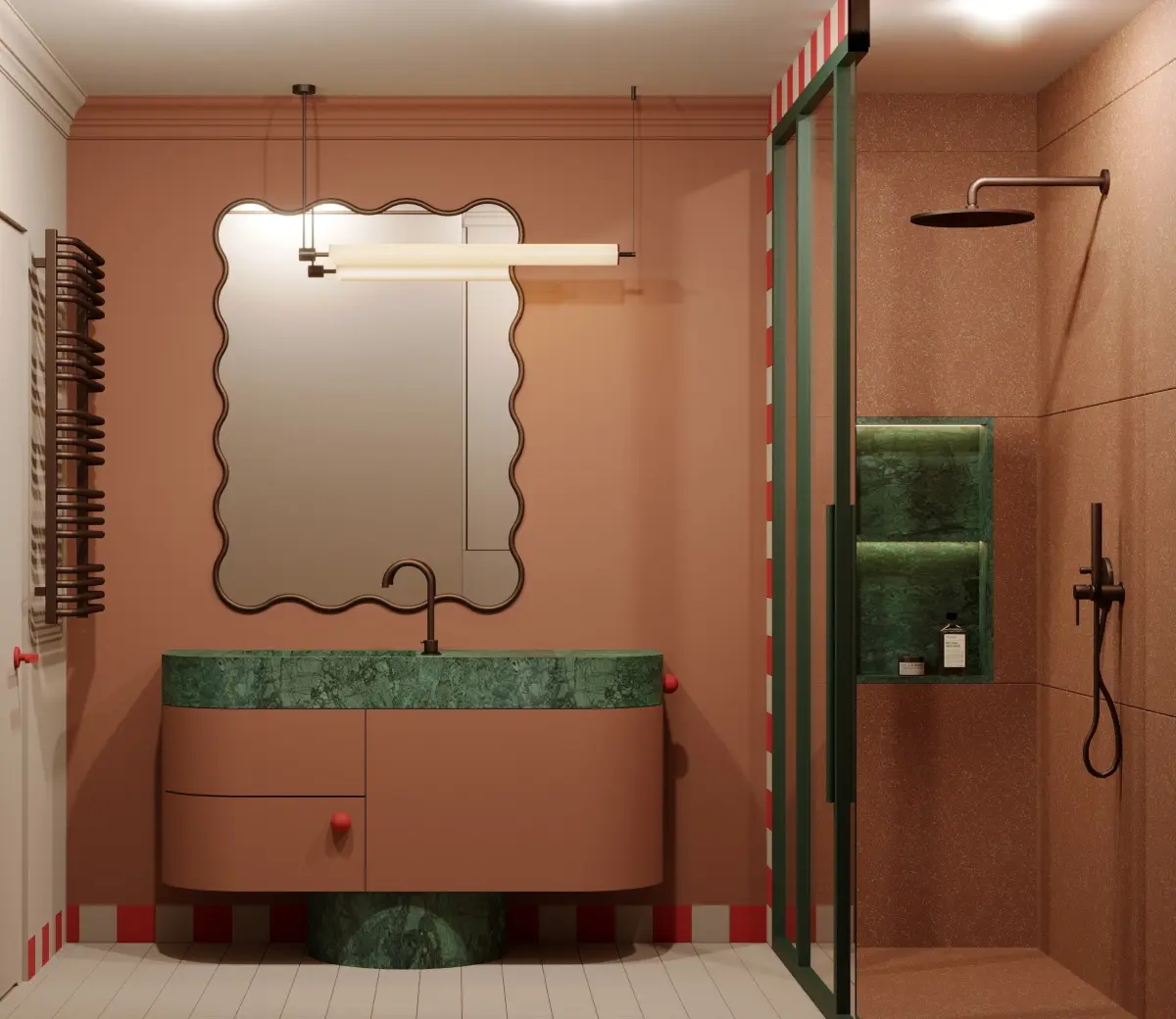 Gdy wnętrza toną w beżach i szarościach a mocniejszy kolor pojawia się tylko w detalu, wkraczają one… projekty skąpane w soczystych barwach, wyróżniające się wzorem, otulone miękkością obłych form i zróżnicowanych tekstur. Na tego typu drobne ,,szaleństwa” największe przyzwolenie znajdujemy w jednym miejscu. To łazienka stwarza największe pole do popisu dla projektanta i definiuje jego formę ekspresji. Kreatywne wnętrza, słodkie niczym ulubione cukierki, dzięki zastosowanym materiałom, przypadną do gustu wszystkim, którzy nie boją się kolorów. Cenią dobrze zaprojektowane wnętrza, które jednocześnie są przytulne, sprzyjają odpoczynkowi, a przede wszystkim mocno wyróżniają się na tle aranżacji zdominowanych przez styl skandynawski, loftowy czy minimalistyczny.