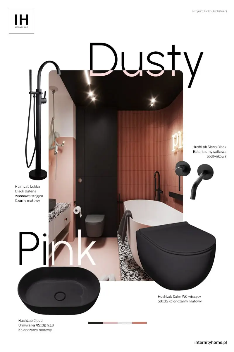 Jego delikatny charakter nabiera mocy w towarzystwie czerni, która pojawia się na wykończeniu ceramiki i armatury. Architekci postawili na produkty polskiej marki HushLab dostępnej w showroomach z Grupy Internity Home.