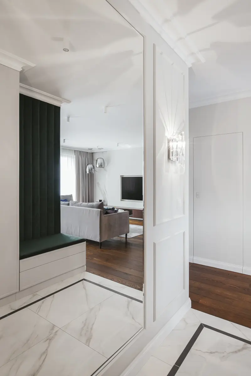 Nieodłącznym elementem klasycystycznych wnętrz, od którego nie sposób uciec (najlepszym weryfikatorem jest czas) są naturalne, najwyższej jakości materiały. Wysoki standard sprawia, że wnętrze jest ponadczasowe. Nie ulega zmiennym modom a nawet może tworzyć swojego rodzaju nasz pomnik.