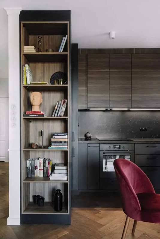 Innym rozwiązaniem, które wznoszą nasze wnętrza na wyższy poziom, jest dopasowanie frontów mebli do zdobień obecnych na ścianach. Przykład znajdziecie w poniższej realizacji.