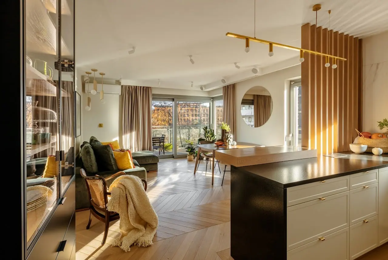 Ze względu na dynamizm tak ułożonego parkietu, jodełka francuska jest idealnym sposobem na uczynienie z podłogi elementu wiodącego w pomieszczeniu.