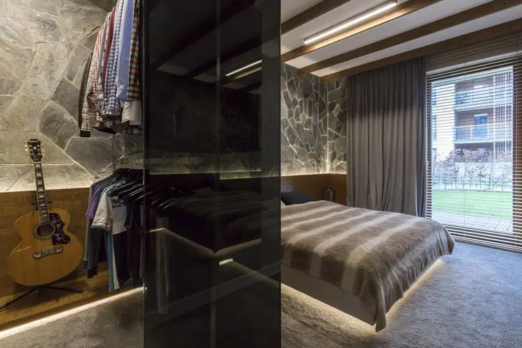 Męskie mieszkania również, a może nawet przede wszystkim potrzebują miejsca, gdzie można ukryć ubrania, deskę do prasowania i kilka innych nie tak małych drobiazgów. W takim przypadku garderoba musi zostać uzbrojona przede wszystkim w sporo wieszaków, które przyjmą wiele koszul, marynarek, płaszczy i kurtek na swoje barki.By jednak miejsce to nie pozostało nudne i wyłącznie użytkowe zadbajmy również o jego aranżacje. Co powiecie na ciemne barwy otoczone przyjemnym ciepłym światłem? My jesteśmy za!
