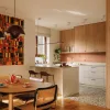 Wygospodarowanie miejsca na mini – jadalnię jest o wiele łatwiejsze jeśli nasza kuchnia jest otwarta na salon. Wtedy zazwyczaj nic nie stoi na przeszkodzie, aby pomiędzy tymi pomieszczeniami ustawić stolik z krzesłami. Oprócz tego, że zyskujemy dodatkowe miejsce do siedzenia, to tym sposobem symbolicznie oddzielamy dwie strefy. Dla uwydatnienia miejsca naszej jadalni w mieszkaniu typu open space, warto ją zaakcentować, na przykład tapetą, albo charakterną lampą.