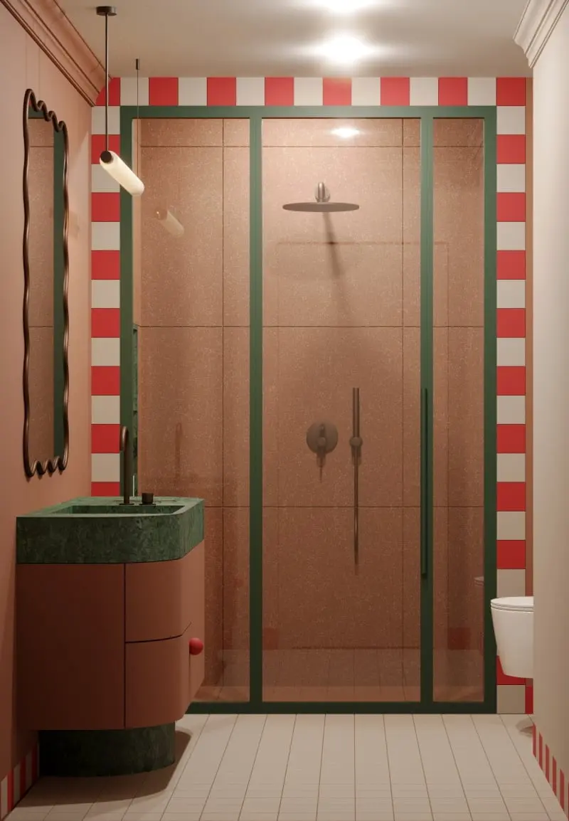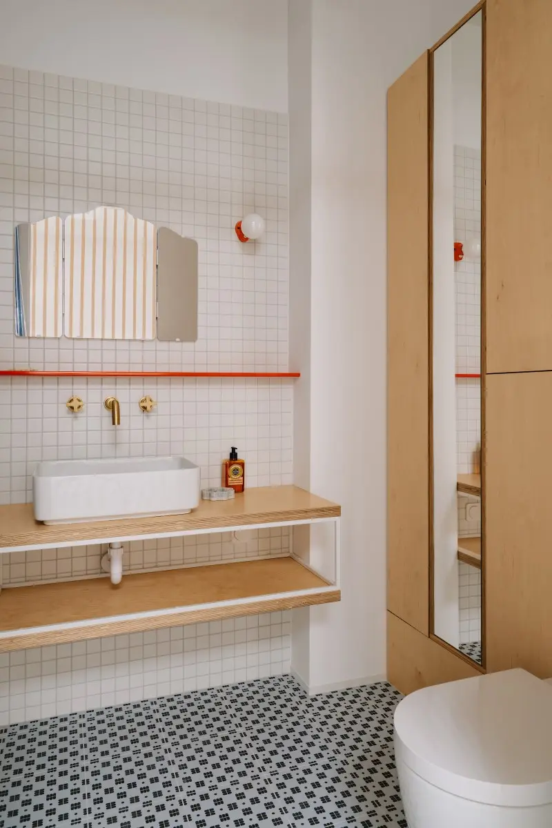Architekt Patricia Urquiola jej łazienki często zawierają kolorowe akcenty, unikalne wzory i tekstury, a także innowacyjne wykorzystanie przestrzeni.