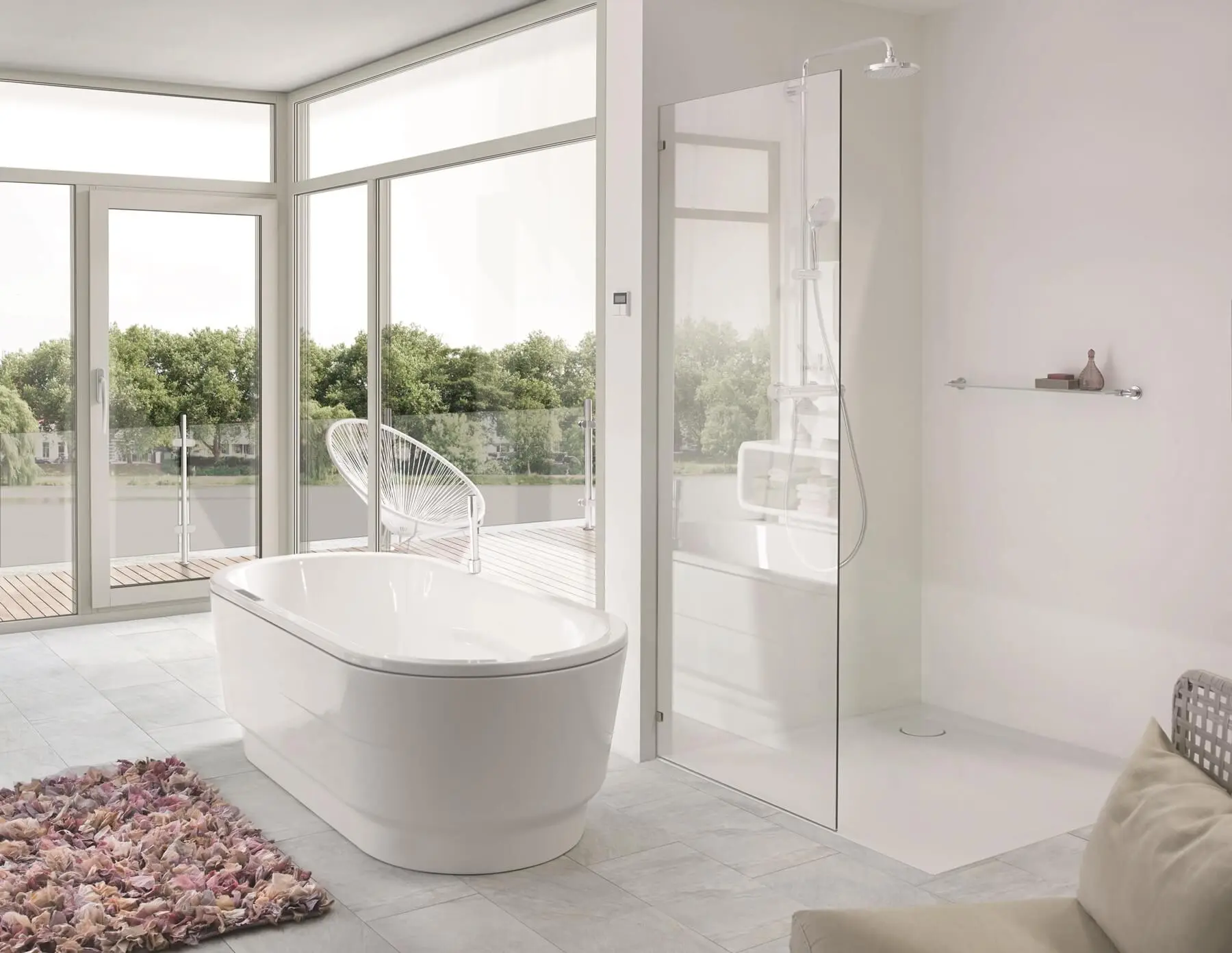 Gdy już znamy „warunki” posiadania łączonej sypialni i łazienki możemy przejść do aranżacji, bowiem jest kilka możliwości. Zacznijmy od tego, że przy takim rozwiązaniu najlepiej sprawdzi się wanna wolno stojąca, która jest synonimem relaksu, elegancji i luksusu. Do tego, gdy mamy wystarczająco dużo miejsca możemy zdecydować się na minimalistyczny prysznic. Nie szkodzi zainwestować w nowinki techniczne, zaproponowane na przykład przez firmę Dornbracht. Co powiecie na prysznic na leżąco? Horizontal Shower to nowinka, która sprawi że zwykły prysznic przeobrazi się w coś naprawdę wyjątkowego. A zresztą – zobaczcie sami!