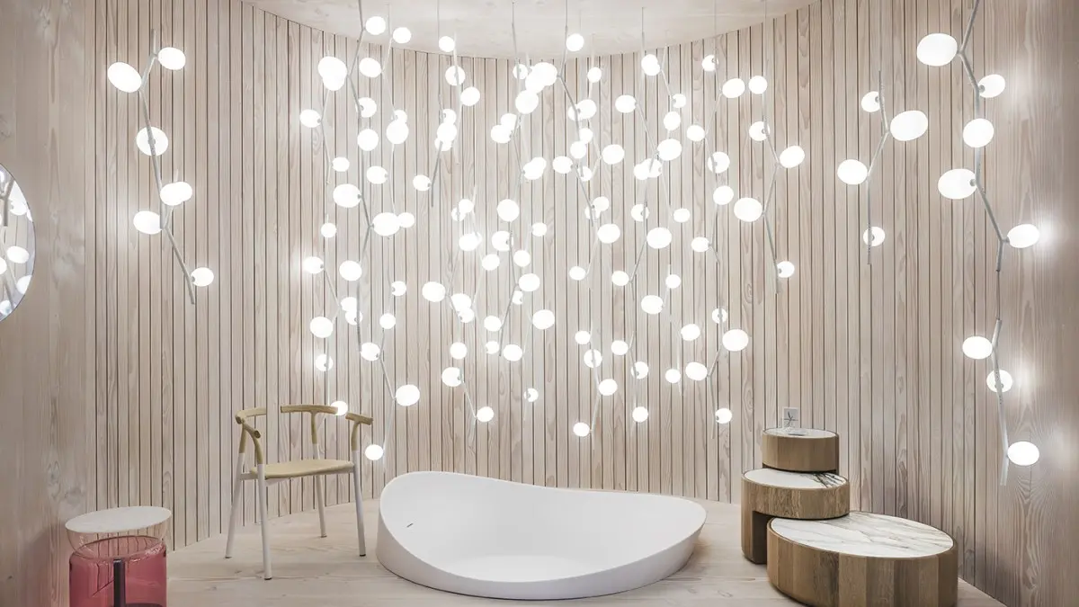 Styl glamour kocha blask i przepych, dlatego niezwykle ważną rolę odegra oświetlenie, które podkreśli lśniące powierzchnie płytek czy frontów mebli. Kryształowy żyrandol czy elegancka w formie lampa dodatkowo nadadzą łazience luksusowego charakteru. Decydując się na dobór oświetlenia do łazienki w stylu glamour warto postawić na przedmioty wykonane ze szlachetnych materiałów takich jak metal, kryształy, szkło, atłas czy aksamit.
