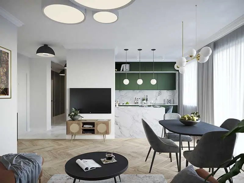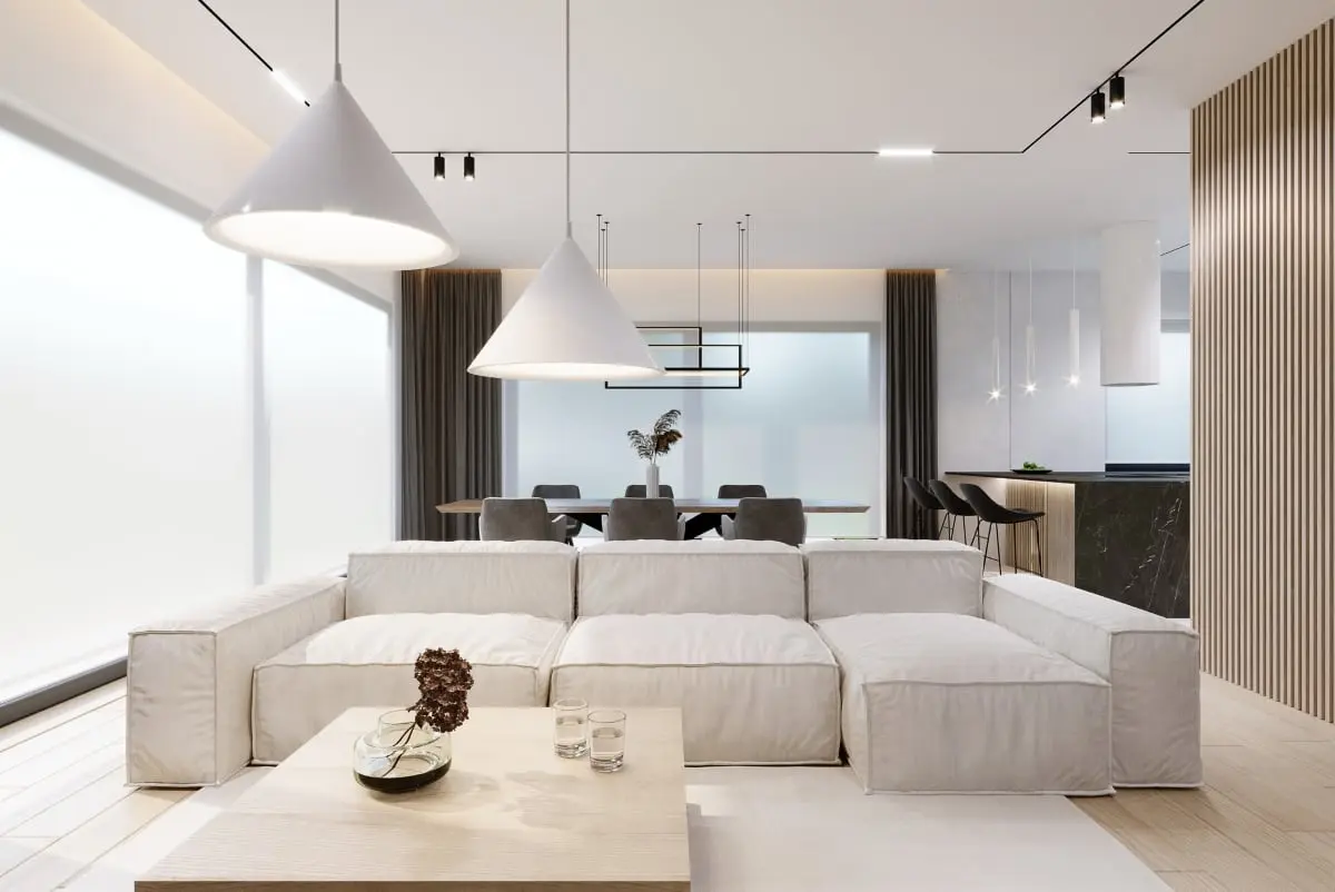 Gdy zdecydujemy się na otwartą strefę, będziemy potrzebować dużo źródeł światła – wtedy musimy osobno oświetlić każdą ze stref – wypoczynkową, salonową oraz jadalnianą.