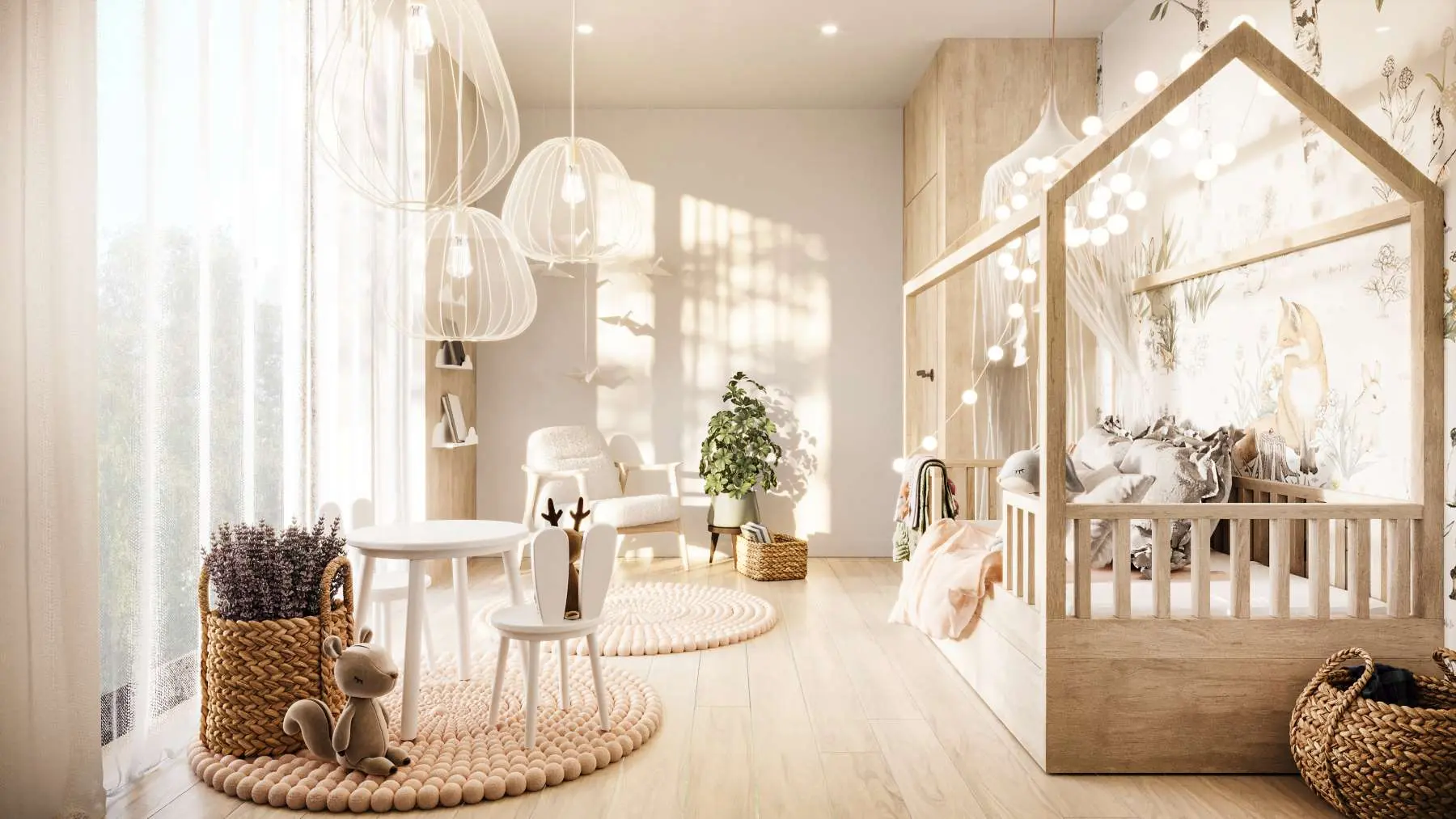 Pokój sprzyja wycieszeniu, a naturalne materiały otulają miło całe wnętrze. Pokój dziecięcy w leśnym stylu to propozycja idealna – wnętrze urządzone w ten sposób wprowadza w baśniowy i zarazem magiczny klimat oraz pobudza dziecięcą wyobraźnie. Ta aranżacja ma nieoceniony wpływ na kształtującą się wrażliwość i osobowość naszego malucha. Warto od najmłodszych lat zarażać nasze dzieci miłością do fauny i flory.