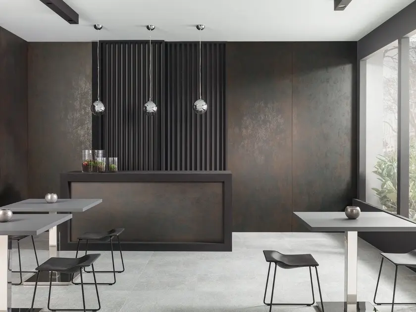 Płytki wielkoformatowe porcelanowe mogą być zastosowane nie tylko na podłogi, ale także na ściany. Płyty można nakładać na każdą przestrzeń w domu, zarówno duże ściany, jak i małe przestrzenie, dzięki czemu synergia i chromatyczne zestawienie z meblami zapewniają niezwykły klimat wnętrza.