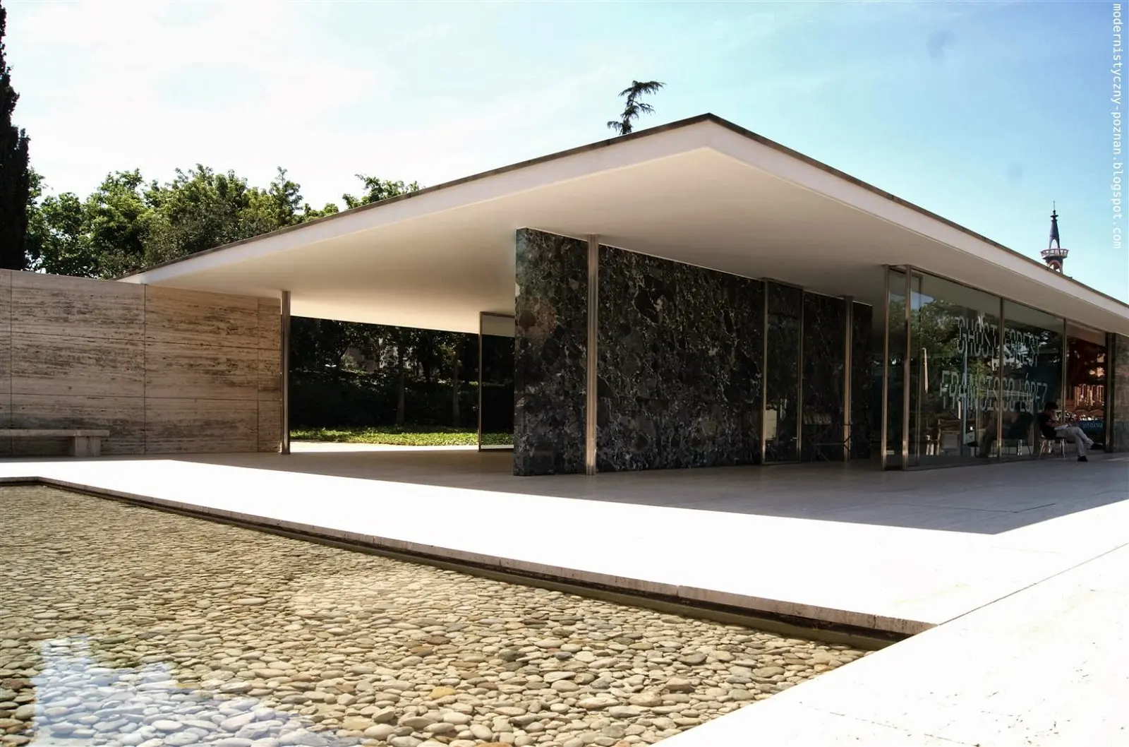 Pawilon w Barcelonie, jeden z jego najsłynniejszych projektów, jest zbudowany tak, aby trasa między wewnętrznymi i zewnętrznymi przestrzeniami, które komunikują się ze sobą płynnie ze sobą współgrały. Prostota formy w połączeniu ze szlachetnością użytych materiałów czynią z niego niepowtarzalne dzieło sztuki.