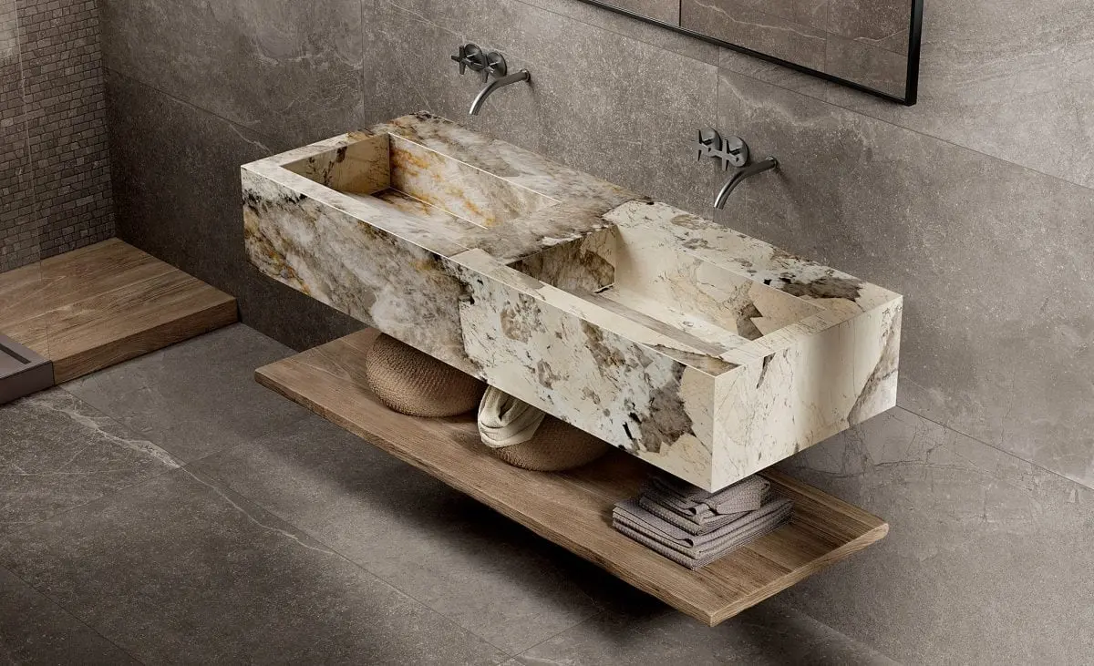 Prostym i najlepszym sposobem na wprowadzenie do łazienki odcieni szarości są płytki. Dostępność płytek jest naprawdę ogromna i czasami ciężko się zdecydować. Bez względu na motyw czy sposób dekoracji, płytki z nadrukiem to doskonały sposób na odzwierciedlenie osobowości w aranżacji wnętrza.