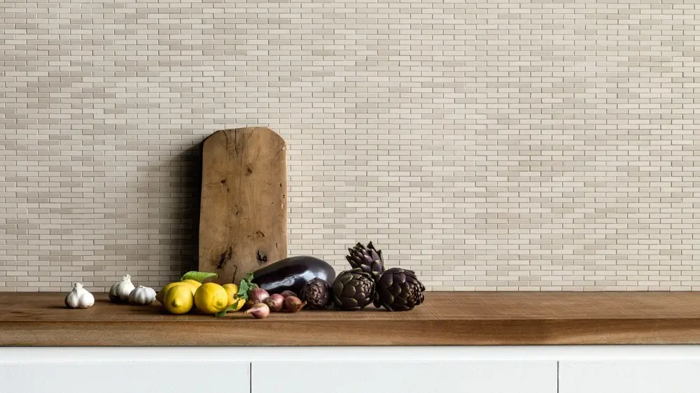 Drewniany blat to klasyka gatunku w aranżacji kuchni. W zależności od tego, jaki chcemy uzyskać efekt, możemy dobrać do niego odpowiednie rozwiązanie na ścianie. Najszlachetniejszym rozwiązaniem na ścianę nad blat, które dopełni urok drewna, jest oczywiście kamień, np. modny Taj Machal, albo nieśmiertelny marmur. Tańszą i równie dobrą alternatywą są płytki wielkoformatowe imitujące różne rodzaje kamienia. Do dyspozycji mamy również płytki dekoracyjne, w tym biżuteryjne mozaiki a także szklane panele.