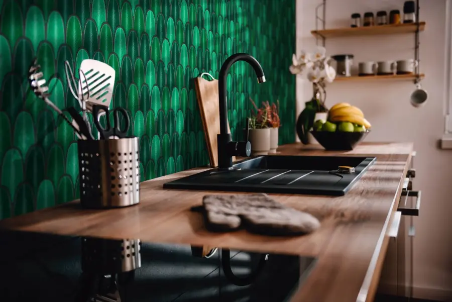 Jak wykończyć ścianę w kuchni z drewnianym blatem