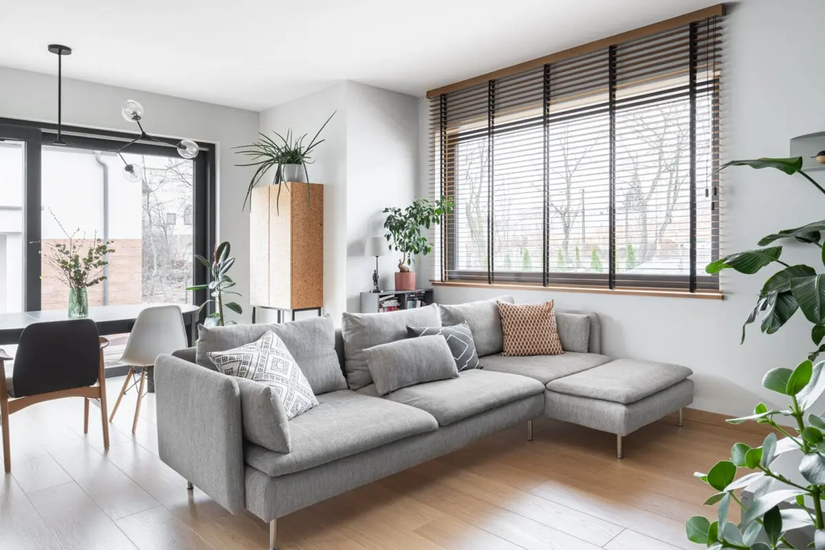 W domu jest dużo wielkopowierzchniowych okien. Wprowadzenie roślin do wnętrza miało dać poczucie kontaktu z zewnętrznym środowiskiem. Kolory i wzory są bliskie naturze, a przestrzeń miejscem do spotkań i dziecięcych zabaw. Czarne oprawy, okucia i dodatki są delikatnym nawiązaniem do modnego stylu loftowego. Drewno, korek i rośliny przełamują go, ocieplając atmosferę. Akcenty mocnych kolorów nadają charakteru.
