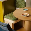 Ciekawym rozwiązaniem jest również mini jadalnia z niewielkim stolikiem i ławeczką, której obicie nawiązuje do wystroju przedpokoju. W kuchni znajduje się także przejście do prywatnej sypialni Inwestorów, ukryte w zabudowie z brzozowego forniru.