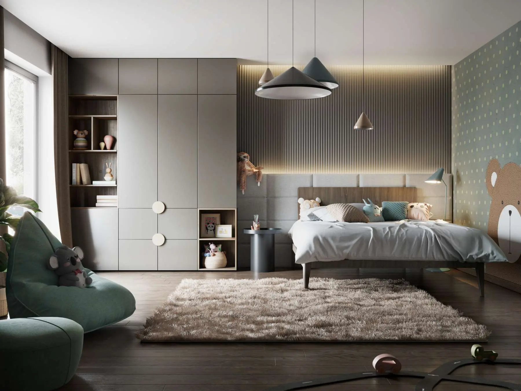 Przyjemna, nostalgiczna paleta barw w pokoju dziecięcym tworzy bezpieczny i stylowy azyl. Dzięki wprowadzeniu tych barw zadbamy o dobre samopoczucie dziecka oraz stworzymy przestrzeń sprzyjającą pozytywnym emocjom. Pokój dziecięcy sprawuje wiele różnych funkcji równocześnie. Pomieszczenie dlatego posiada wydzielone strefy do odpoczynku, zabawy oraz nauki.