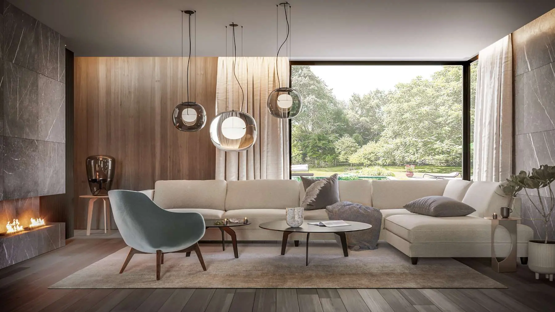 Salon z kominkiem odpowiednio zaaranżowany stanowi przytulne miejsce spotkań i relaksu. Kominek ociepla nowoczesne wnętrze i podkreśla styl.