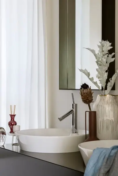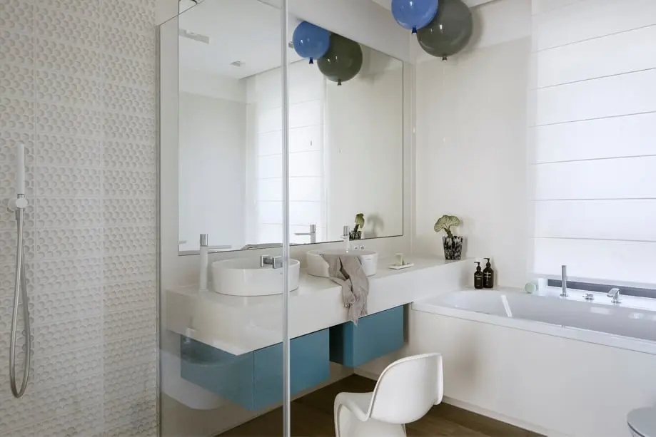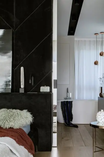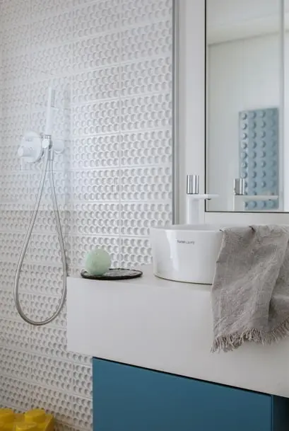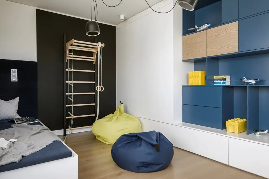 Pokój dziecięcy i łazienka są uniwersalne, dzięki czemu mogą “rosnąć” razem z pociechami. Wesołe detale nawiązują do kolorystyki i kształtu klocków Lego. Wioletta Niedziela-Bogusz stworzyła ponadczasowe minimalistyczne wnętrza, wykończone wysokiej jakości materiałami, oprawione stonowaną paletą szlachetnych barw. Pieczołowicie dobrane elementy dekoracyjne mają charakter rzeźbiarski, ciekawe formy i faktury.