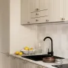Pomimo ograniczonego metrażu i wysokości 2,80 m, mieszkanie sprawia wrażenie przestronnego. Dzięki inteligentnym rozwiązaniom, takim jak przesunięcie ścian i podkreślenie osi wnętrza, układ zyskał harmonię. To przykład, jak odpowiednia gra formą i kolorem może zmienić mieszkanie w małe dzieło sztuki użytkowej.