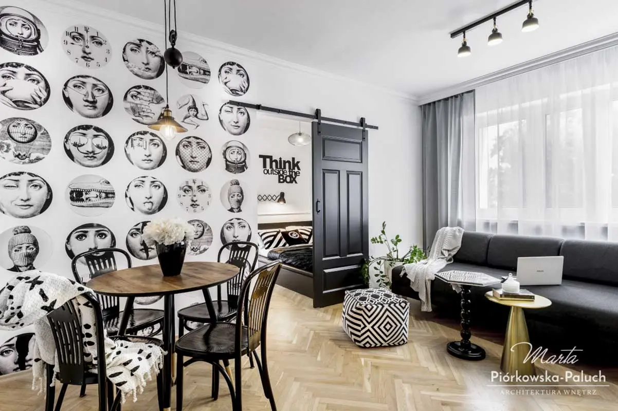W dzisiejszym wpisie przedstawimy wyjątkowe mieszkanie na wynajem zaprojektowane przez Martę Piórkowską – Paluch. Oryginalny koncept wnętrza oparty o czarno – białą geometrię z platoniczną miłością słynnego Pierro Fornasettiego do pięknej Liny Cavalieri w tle, sprawił że projekt wyróżnia się na rynku nieruchomości i na długo zapada w pamięci. Jak zdradza sama architektka mieszkanie jest zaprojektowane zgodnie z teorią „Think outside the box”.