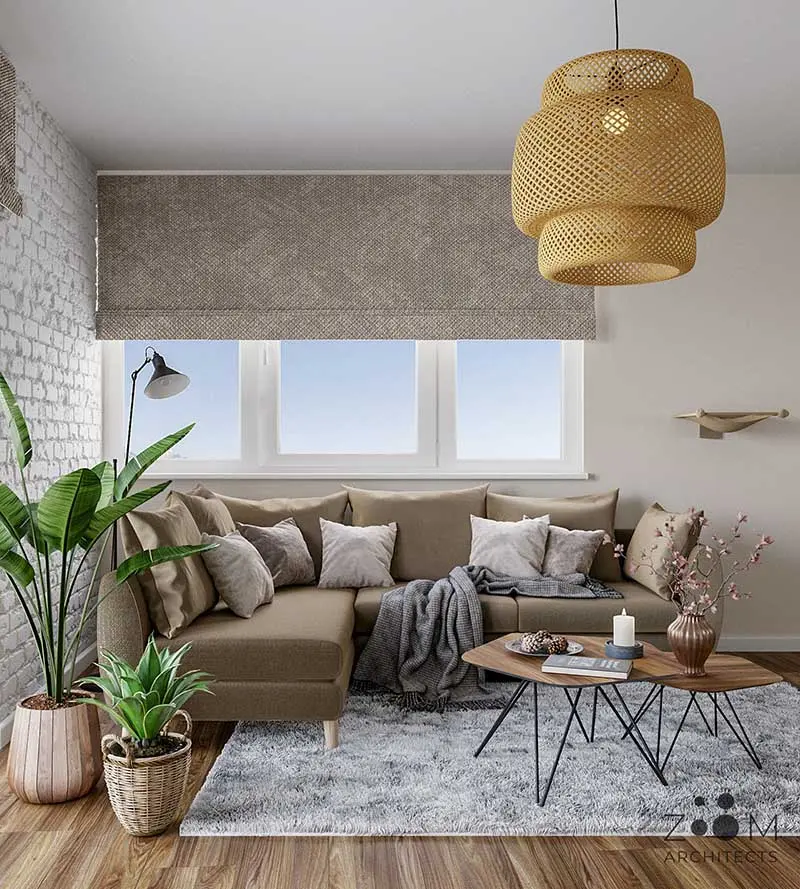 Całe mieszkanie jest bardzo przytulne i wykończone w stylu boho. Choć ma 49 metrów jest to kawalerka składająca się z otwartej na salon kuchni, niewielkiej sypialni oraz z łazienki.