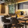W projekcie mieszkania dość kluczową rolę odgrywa światło, które dostaje się przez przeszklenia, ono również podkreśla charakter form i materiałów. Lampy są dość istotnym elementem wystroju loftowych wnętrz, które raczej dominują. Tu jest jednak inaczej, małe punkty świetlne nadają klimatu i ozdabiają wnętrze niczym delikatna biżuteria.